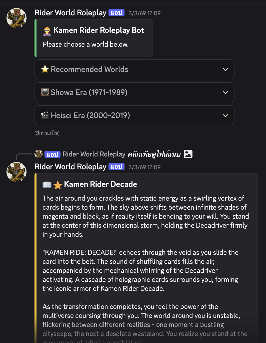 บอท Rider World Support และ Roleplay สำหรับตอบคำถามด้วย AI และจัดการระบบโลกภายในเกม
